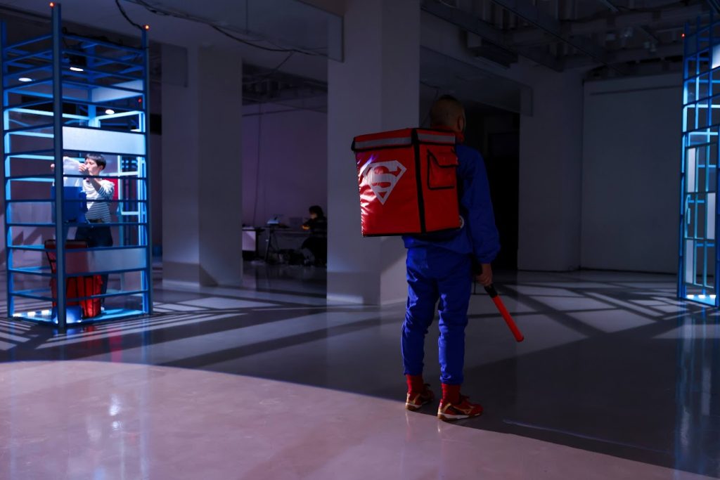 地上を動くのは、リュックを背負った黒づくめのデリバリーの男たちだけだ。